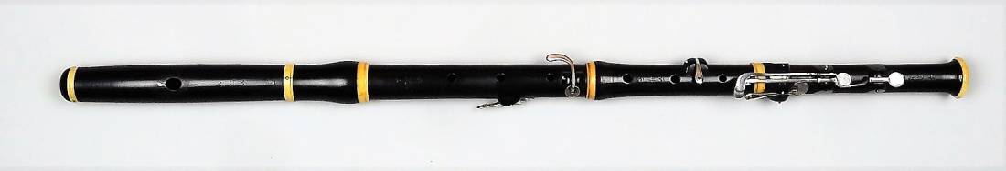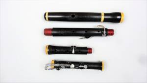 Konstruktion: Grenadill. 4teilig. Bohrung konisch. C-Fuss, mit ausgeprägtem Becher am Fussende. Kopfstück mit Stimmzug; ohne Korkspindel und Indexstift. Garnituren Elfenbein. 6 Silberklappen in Bocklagerung.
