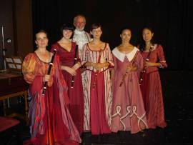 1. Reihe von links: Marc Hantai und Barthold Kuijken; Giovanni Tardino; Anne Pustlauk und Tony Bingham; Ulrich Halder. 2. Reihe:Francesco Carreras und Gianni Lazzari; Peter Spohr; Ulrich Halder; Alain Winkelman. 3. Reihe: Keizo Yokoyama; Rachel Brown mit Studentinnen und einem Hahn im Korb; Jan de Winne, Jörg Fiedler, Rick Wilson, Michael Lynn, Francesco Carreras; Barthold Kuijken und Ulrich Halder. 4. Reihe: Benjamin Glauser; Peter Thalheimer; Sarah Rumer; Conrad Steinmann.