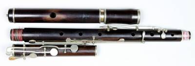 Diese Seite bearbeiten Links hierher Inhaltsverzeichnis Objekt-Nr. 2004-73 Johann Andreas Mollenhauer, Fulda / D 8 Klappen - Flöte in C Modell ‚Boehm 1829’ Mitte 19. Jhdt * explanations to the inventory in English see Legend Objekt-Nr. 2004-73 Johann Andreas Mollenhauer, Fulda / D 8 Klappen - Flöte in C Modell ‚Boehm 1829’ Mitte 19. Jhdt KLANGBEISPIEL Franz Schubert (1768 - 1824): An die Musik (vergleiche Klangbeispiel 2014SB-74) 85_73_j._a._mollenhauer_boehm_1829_in_f._schubert_an_die_musik.mp3 Konstruktion: Cocusholz. 3teilig (Mittel- und Herzteil als Korpus zusammen). C-Fuss. Bohrung konisch. Garnituren und Klappen Silber. Klappen mit flachen Deckeln. B- und F-Klappe je mit Zusatzhebel. D3/E3-Triller (Klappenhebel gebrochen). Säulchenlagerung; Säulchen ohne Grundplatte direkt im Holz verankert; geschraubte Achsen. Kopfstück mit Stimmzug; Korkspindel mit Indexstift (Metall). Masse: Lt 66.8 / Ls 58.5 / Dm 17.2 – 10.4 / ML 10.8 x 9.1 / A1 = ca. 445 Hz Signatur: auf Kopfstück und Korpus / (aufrechter Löwe) / MOLLENHAUER / FULDA / (stilisierte Sonne) / Etui original Zustand: 2 = reparierte Risse im Kopfstück und Stimmzug. Gebrochener Hebel der D/E-Trillerklappe. Spieleigenschaften: 3 = leicht in Klang und Ansprache. Intonation gut; Gabelgriffe F und Gis hoch Seltenheit: 3 Hersteller: Johann Andreas Mollenhauer (1798 – 1871) eröffnete nach Lehr- und Wanderjahren 1822 seine eigene Werkstatt für Holzblasinstrumente in seinem Geburtsort Fulda. Bereits 1825 erhielt er den Titel eines Hoflieferanten des Kurfürsten Wilhelm von Hessen. Ab 1864 firmierte er zusammen mit seinen Söhnen Gustav und Thomas (1840 – 1914), welch letzterer von 1862 – 1864 bei Theobald Böhm in München gearbeitet hatte und später die Nachfolge seines Vaters antrat. Das vorliegende Instrument entspricht weitgehend dem ersten Flötenmodell, das Theobald Böhm als selbständiger Instrumentenbauer entwickelte, für welches er 1829 vom Bayernkönig Maximilian ein ‚Privilegium’ erlangte und welches noch viele Jahre lang von Böhms späterem Partner und Werkstattnachfolger Rudolph Greve (1806 – 1862) erfolgreich gebaut wurde (s. 2014SB-74 und 2014SB-75). Mit diesem Modell führte Böhm u.a. seine Londoner Tournée von 1831 durch, auf welcher er nach der Begegnung mit Charles Nicholson die entscheidenden Impulse zur Entwicklung seiner konischen Ringklappenflöte von 1832 erhielt.- Dass die Firma Mollenhauer das Böhm-Modell 1829 in verschiedenen Varianten herstellte, zeigt ein Vergleich mit dem Instrument 2018-253, welches in Buchsbaum, mit D-Fuss und Messingklappen in Bocklagerung gebaut wurde. von admin