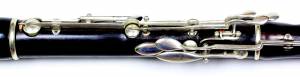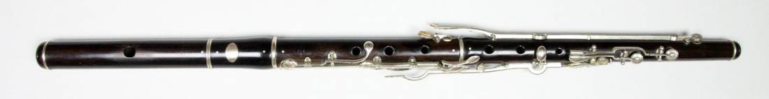 Diese Seite bearbeiten Links hierher Inhaltsverzeichnis Objekt-Nr. 2009-86 Johann Joseph Ziegler, Wien / A 11 Klappen – Flöte in C um 1870 * explanations to the inventory in English see Legend Objekt-Nr. 2009-86 Johann Joseph Ziegler, Wien / A 11 Klappen – Flöte in C um 1870 Konstruktion: Cocobolo (?). 3teilig (Herz- und Fussteil zusammen). H-Fuss. Bohrung konisch. Garnituren und Klappen aus Neusilber. Gis zweifach; zusätzliche Hebel für D3/E3-Triller, B und Dis. Säulchenlagerung (auf ovalen Platten); Achsen geschraubt. Cis, C und H-Klappen mit Zinnpolstern. Alle Tonlöcher unter Klappen metallgefüttert. Kopfstück mit eingelegtem Metallrohr; Stimmzug; Korkspindel und Indexstift (Holz). Masse: Lt 71.5 / Ls 61.8 / Dm 17.1 – 9.4 / ML 11.0 x 9.7 / A1 = ca. 448 Hz Signatur: auf allen Teilen ausser Stimmzug / (Habsburger Adler) / I : ZIEGLER / WIEN / Etui original Zustand: 2 = Reparierte Risse im Kopfstück Spieleigenschaften: 3 = voller, schmelzender Klang. Intonation relativ gut; Fis3 hoch. Gabelgriffe sehr gut, nur F und Gis etwas hoch Seltenheit: 2 Hersteller: Instrument aus der Werkstatt von Johann Joseph Ziegler sen. (1795 – 1858). Nähere Angaben zu Ziegler und zum 'Wiener Stil' siehe 2009-85. Vorliegendes, wohl eher spätes Instrument wurde wahrscheinlich unter Johann Baptist Ziegler jun. (1824 – 1879) hergestellt. (Externe Bearbeitung)