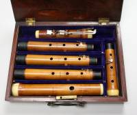 Diese Seite bearbeiten Links hierher Inhaltsverzeichnis Objekt-Nr. 2007-32 Pietro Grassi Florio, London /GB 6 Klappen – Flöte in C um 1790 * Erläuterungen zum Inventar siehe Legende Objekt-Nr. 2007-32 Pietro Grassi Florio, London /GB 6 Klappen – Flöte in C um 1790 KLANGBEISPIEL Ludwig van Beethoven (1770 - 1827): Menuett op. 49 Nr. 2 46_32_p._g._florio_in_beethoven_menuett_op._49_nr._2.mp3 Konstruktion: Buchsbaum. 4teilig. Bohrung konisch. 3 Mittelteile (corps de rechange). Garnituren Elfenbein. Kopfstück mit Korkspindel und graduiertem Indexstift aus Elfenbein. C-Fuss. 6 Klappen aus Silber. Klappendeckel quadratisch, mit Zierkerben in den Ecken. Bocklagerung. Arm der C - Klappe verziert, führt über die Cis - Klappe. Klappen unter den Polstern mit Initialen / JH / gezeichnet (= John Hale, Flötenbauer). Masse: Mittelteil Nr. 4: Lt 68.5 / Ls 60.7 / Dm 18.8 – 10.7 / ML 11.0 x 9.8 / A1 = ca. 427 Hz. Mittelteil Nr. 5: Lt 67.8 / Ls 59.8 / A1 = ca. 435 Hz. Mittelteil Nr. 6: Lt 67.0 / Ls 59.0 / A1 = ca. 440 Hz. Signatur: auf allen Teilen / FLORIO / am Fussstück FLORIO / LONDON / auf den Mittelteilen jeweils zusätzliche Nummer (4, 5, 6). Originaler Holzkasten aus Palisander Zustand: 2 = gerissener Elfenbeinring am Kopfstück mit Metallring verstärkt. Mundloch ev. etwas vergrössert Spieleigenschaften: 3 = offener, starker Klang; gute, leichte 3.Oktave. Intonation bei allen Mittelstücken etwas problematisch, vor allem bei Nr. 5 Seltenheit: 3 Hersteller: P. G. Florio (1730 – 1795), Flötist italienischer Herkunft, ging nach mehrjähriger Tätigkeit am Dresdener Hof 1756 erst nach Paris, dann um 1760 nach London. Florio propagierte als einer der ersten die Mehrklappenflöte und den C-Fuss. Die Instrumente unter seinem Namen wurden wahrscheinlich von den bekannten Londoner Flötenbauern Richard Potter oder (zumindest die Klappen, s. o.) von John Hale gefertigt (Werkstatt 1785 - 1804). von admin